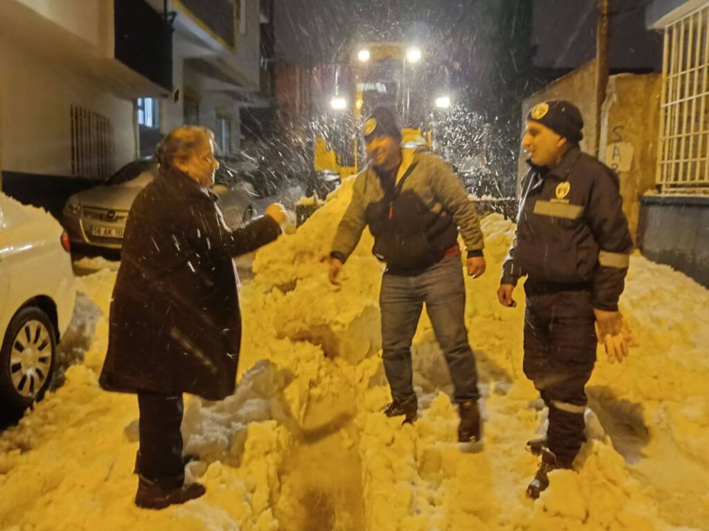 Belediyeden yapılan paylaşımlarda, kar yağışının olumsuz etkilerine karşı vatandaşlara da “tedbirli olunması” çağrısı yapıldı. Karla mücadele çalışmalarının yoğun şekilde sürdüğü ana arterlerde ve mahalle yollarında ekiplerin araç ve personel desteği ile kar temizleme çalışmaları yürüttüğü kaydedildi.